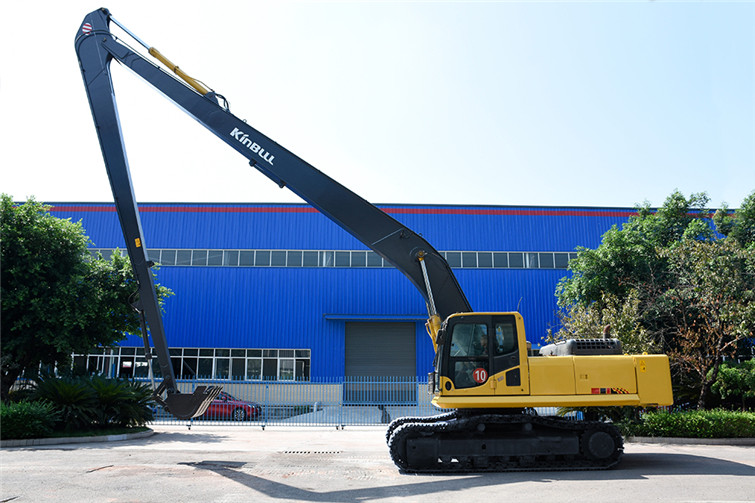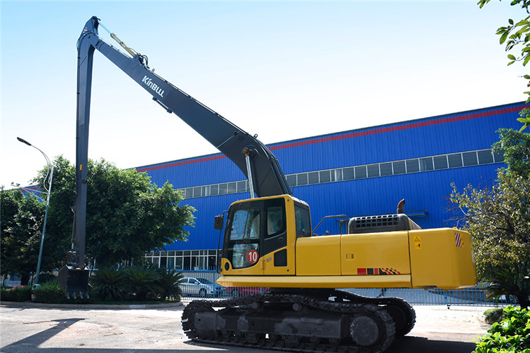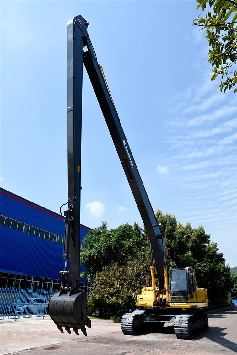 火狐36T两段式加长臂履带式挖机,动臂长12米,斗杆长9米,共计21米,其挖掘高度,挖掘深度,挖掘半径都得到了显著提升,利用这种超长型动臂和超长型斗杆,操作者可在受地面影响的特殊工况下轻松实现挖掘功能,发挥其巨大威力。广泛适用于土砂、混凝土等建筑搬运, 楼体拆解, 地铁出入口开挖,高速公路坡面修整, 河道疏通清淤及建筑基础、深沟等土石方挖掘作业,能完成标准挖掘机不能完成的特殊任务。 而今全国各地纷纷上马地铁建设,河道疏浚治污工程遍地开花,细分市场生机勃勃,占领一席之地,火狐势在必行!