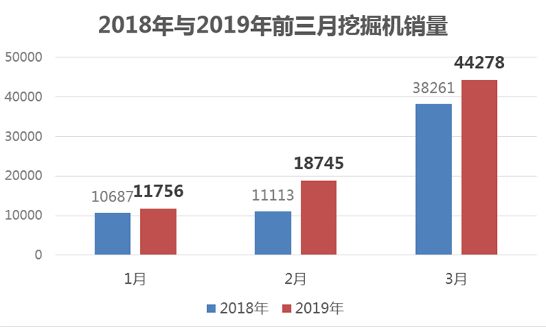 2019年3月挖掘机实现销售44278台,同比增长15.7%